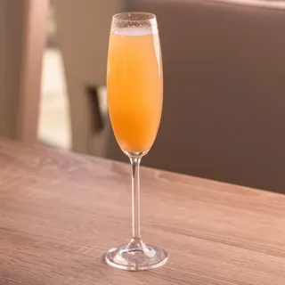 World famous cocktail from Harry's Bar in Venice, Italy. Prosecco, white peach puree, soda, simple syrup