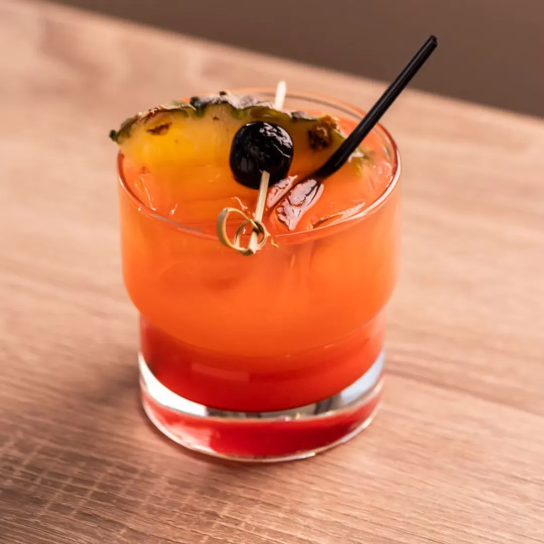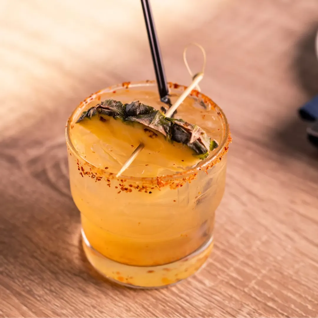House Pineapple Vodka, lime juice, tropical sour mix, spicy simple syrup, Tajín spiced rim, dried pineapple